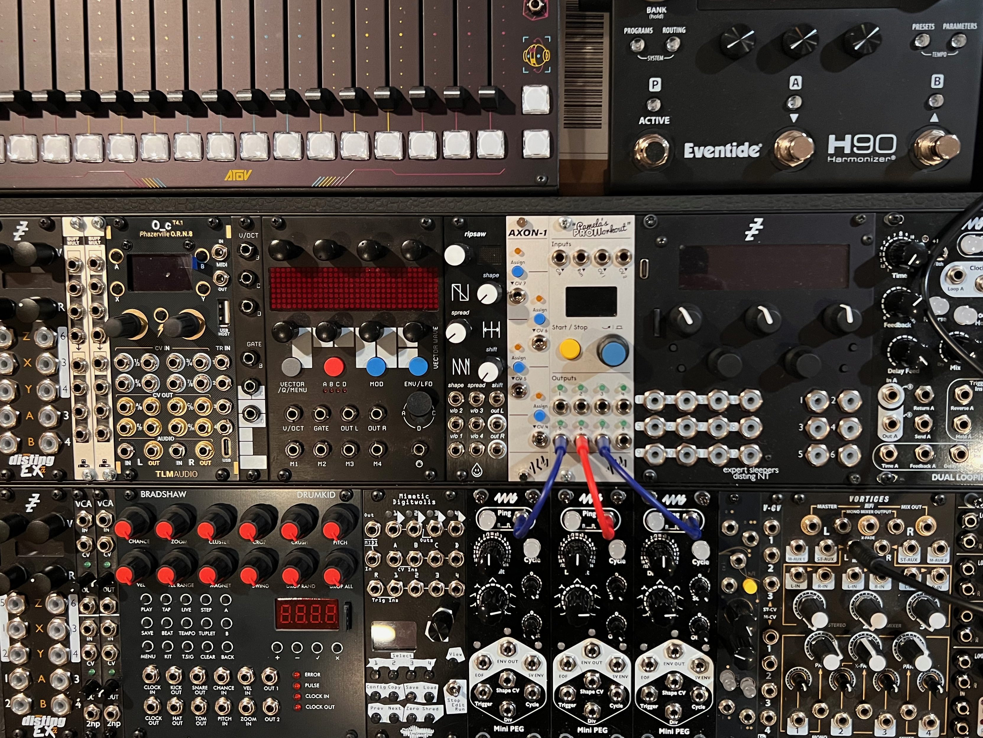 I’ve assembled a new Eurorack-centric instrument around a novel control interface (AtoVproject Faderpunk) that has been programmed to “Scan” through an assortment of Digital FM Synthesis methods & Sample Libraries; this after being asked to perform at Pianos just prior to Christmas, wanting a clean break from the “Playthroughs” performances given in the year prior.